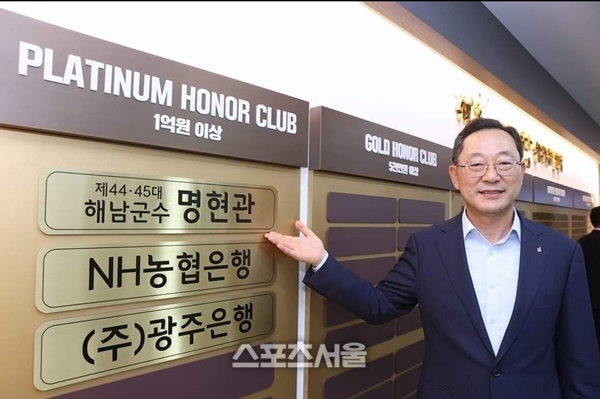 해남군 명예의 전당에 헌액된 대상은 1억원 이상‘플래티넘’에는 최고액을 기부한 명현관 해남군수를 비롯해 NH농협은행 해남군지부와 ㈜광주은행 해남지점이 이름을 올렸다.