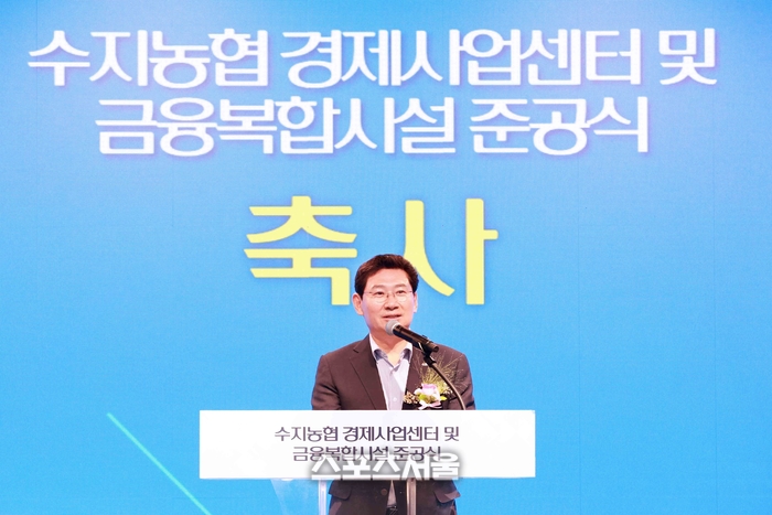이날 준공한 수지농협 경제사업센터 및 금융복합시설은 대지면적 6339㎡, 연면적 1만1054㎡로 지하1층, 지상 4층의 규모다. 건물은 지난 2021년 10월에 착공해 지난달 준공했다.