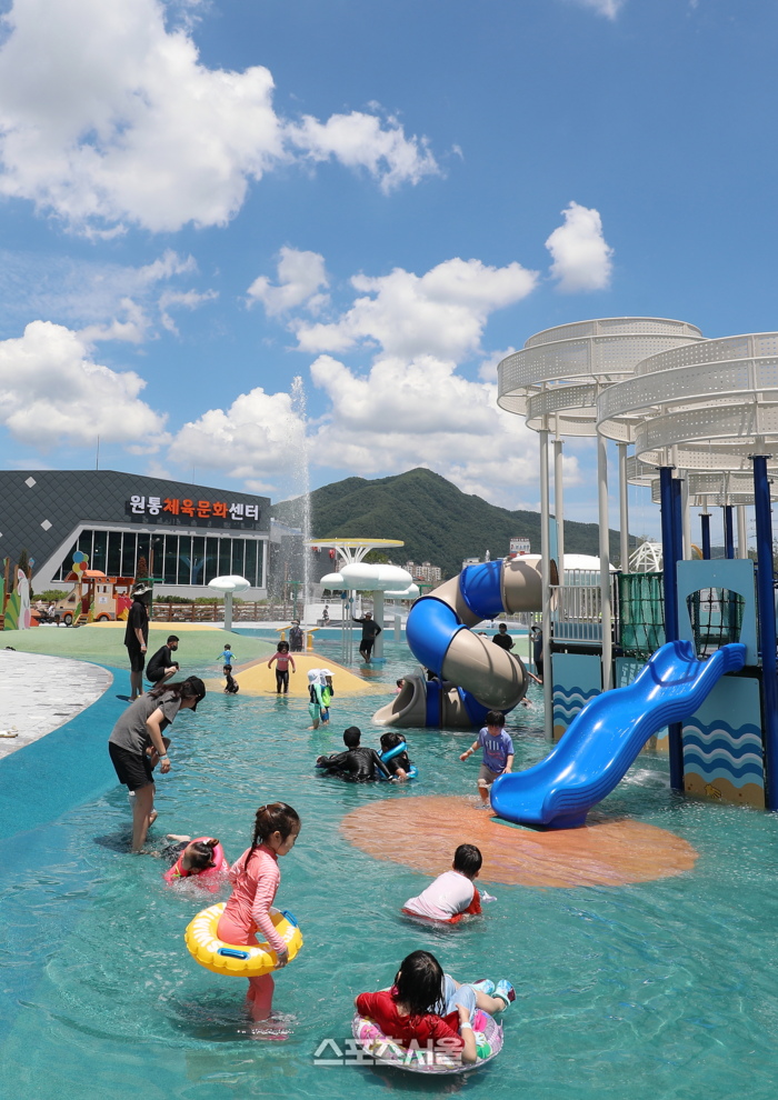 지난해 처음 문을 연 원통체육문화센터 물놀이장은 클라우드조합 놀이대, 클라우드 분수, 워터슈터 등 아이들이 안전하게 이용할 수 있는 야외 놀이시설을 갖추고 있다. 물놀이장 옆에는 오전 9시부터 오후 6시까지 한낮 더위를 식히기 안성맞춤인 야외분수대도 함께 운영된다.