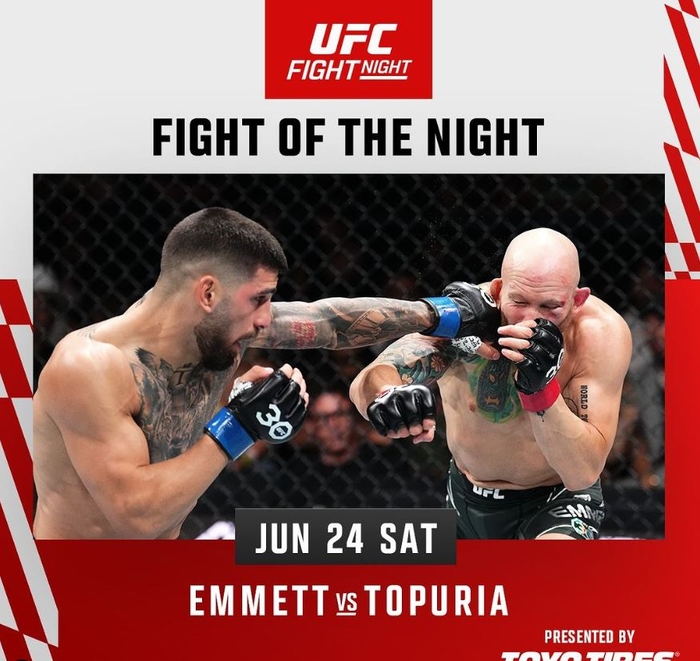 일리아 토푸리아와 조쉬 에멧은 25일(한국시간) 미국 플로리다주 잭슨빌 비스타 베테랑스 메모리얼 아레나에서 열린 ‘UFC 파이트 나이트: 에멧 vs 토푸리아’ 메인 이벤트 페더급 경기로 격돌했다.