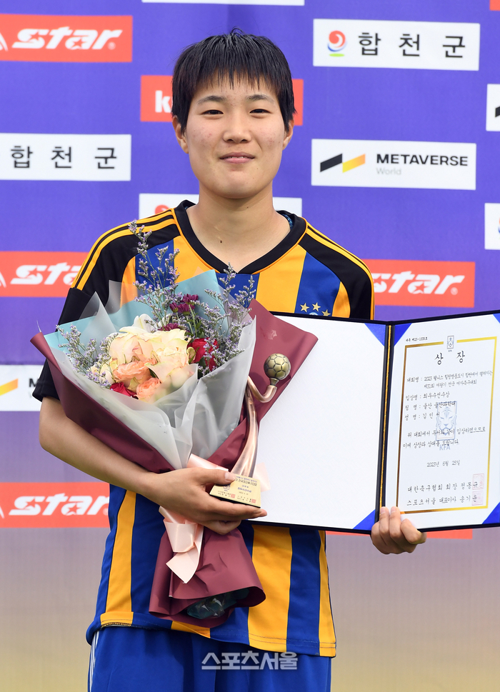 축구 커리어에서 최우수선수상은 처음이라는 김민서. 그의 롤모델은 ‘골든보이’ 이강인(마요르카)이다. 김민서는 “볼을 소유하거나, 탈압박하는 플레이 등을 본받고 싶다. 따라하고 싶은 선수다”라고 미소 지었다.