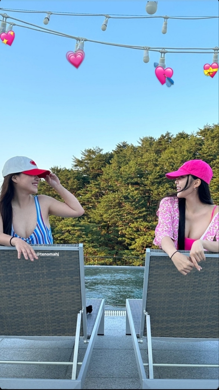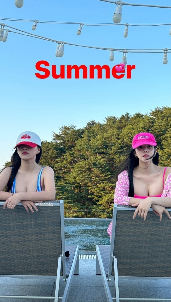 사진 속 이들은 수영장을 배경으로 선베드에서 포즈를 취해 눈길을 끈다.
