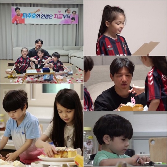 건후와 진우는 나은의 지휘에 따라 고사리손으로 빵 위에 장식을 하며 오직 아빠 박주호를 위한 세상에 하나뿐인 케이크를 완성해 기특함을 선사할 예정. 순탄한 준비 과정도 잠시, 나은이 한 눈을 판 사이 4살 진우는 장꾸미를 폭발시킨다. 진우는 숫자 6모양 케이크의 윗 부분을 잘라 덩그러니 동그라미만 남은 케이크를 탄생시킨다. 과연 나은은 난관을 어떻게 헤쳐 나갈지 궁금증을 자아낸다.