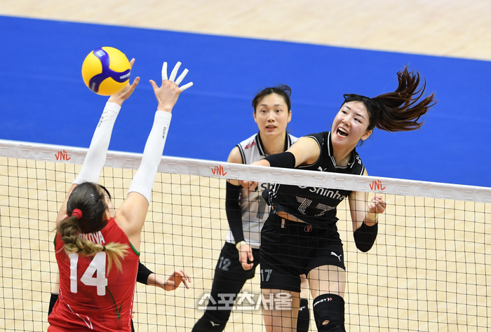한국 여자배구 대표팀 정호영(오른쪽) 27일 서수원칠보체육관에서 열린 2023 수원 발리볼네이션스리그 불가리아와 경기에서 속공을 하고 있다. 2023. 6. 27. 수원 | 박진업기자 upandup@sportsseoul.com