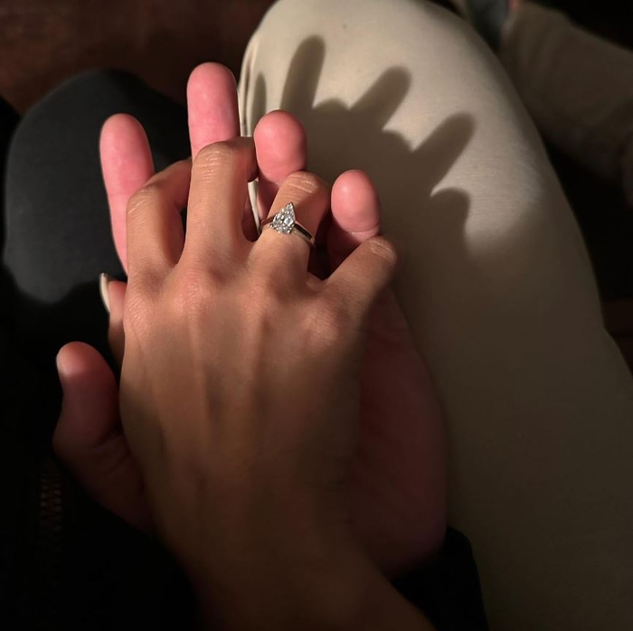 줄리엔 강은 제이제이와 손을 잡고 있는 사진을 공개했다. 손가락에는 약혼반지가 끼워져 있다. 다정하게 깍지를 끼고 있는 모습에서 진한 사랑이 느껴진다.
