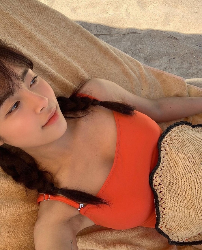 공개한 사진에는 주황색 수영복을 입은 채 여러 자세를 취한 그의 모습이 담겼다.