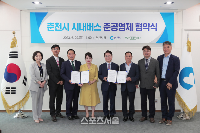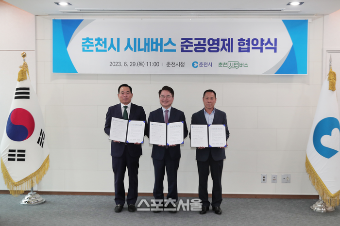 춘천시는 7월 1일부터 시내버스 준공영제 시행으로 노선계획권을 확보함에 따라 29일 접견실에서 육동한 춘천시장, 강연술 ㈜춘천시민버스 대표, 전상철 춘천시민버스 근로자 대표가 공동으로 ‘2023년 시민 중심의 하반기 시내버스 개편 계획’을 발표했다.