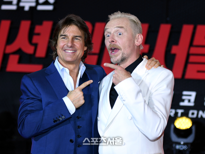 톰 크루즈(왼쪽)와 사이먼 페그가 29일 서울 잠실 롯데월드타워에서 열린 '미션임파서블 : 데드 레코닝 PART ONE' 레드카펫 행사에서 포즈를 취하고 있다. 2023. 6. 29. 최승섭기자 thunder@sportsseoul.com