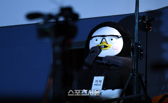 펭수가 29일 서울 잠실 롯데시네마 월드타워에서 열린 '미션임파서블 : 데드 레코닝 PART ONE' 프레스 컨퍼런스에서 톰 크루즈에 질문을 하고 있다. 2023. 6. 29. 최승섭기자 thunder@sportsseoul.com