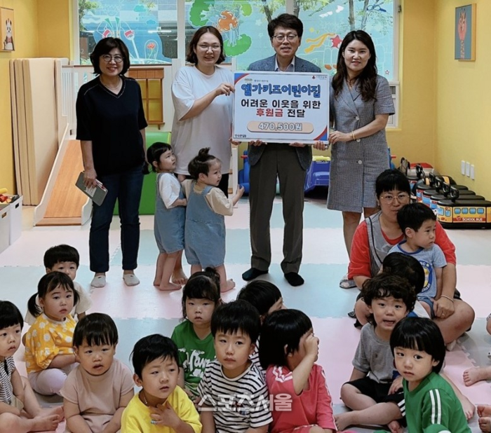 [스포츠서울ㅣ원주=김기원 기자] 반곡관설동 엘가키즈어린이집(원장 권경희)은 지난 30일 반곡관설동 행정복지센터에 부모참여수업 ‘시장놀이’수익금 47만 500원을 전달했다.