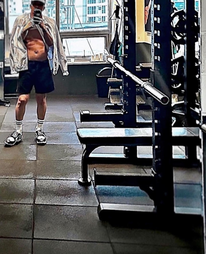 공개한 사진은 그의 일상을 담은 것으로 추정됐다. 이중 헬스장에서 찍은 그의 상의 탈의 사진이 화제가 됐다.