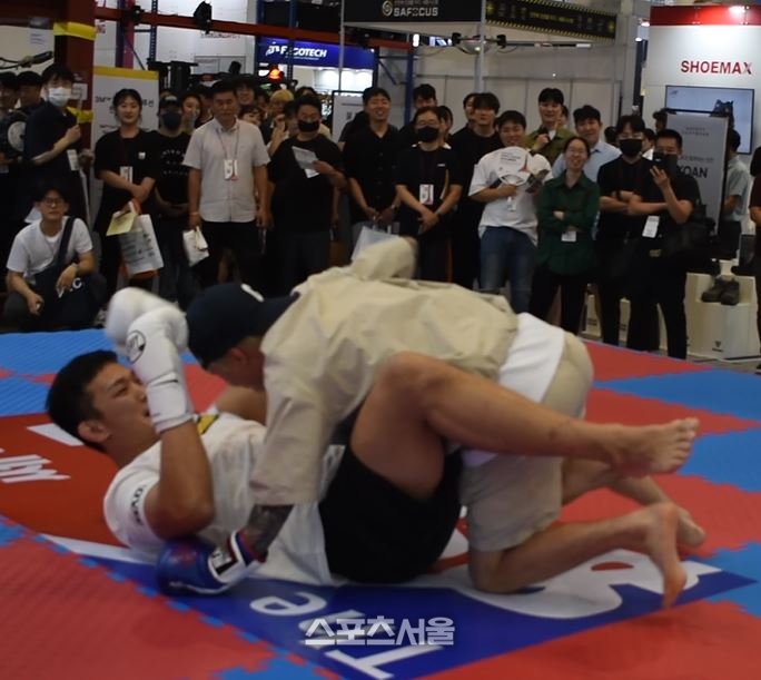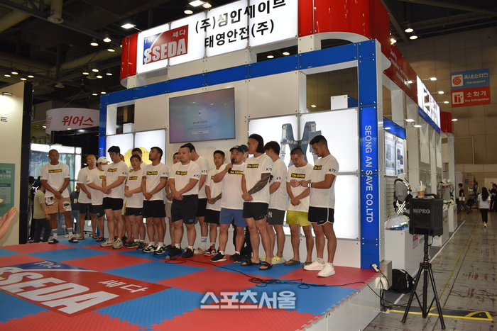 이 자리에서 제품만 소개하는 것은 아니다. (주)성안세이브·태영안전이 후원하는 국내 대표 종합격투기 체육관 코리안탑팀(KTT)과 팀매드 소속 선수들이 한자리에 모여 격투기를 시연하는 ‘쎄다 격투기 시연회’가 팬들의 발길을 멈추게 한다.