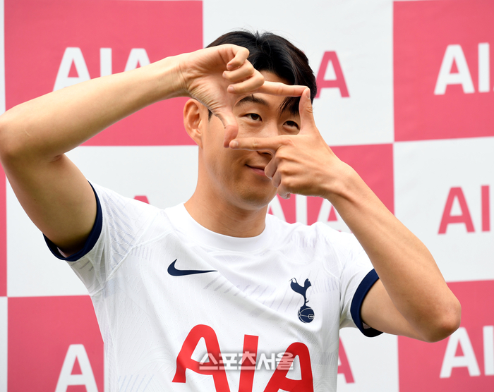 손흥민이 4일 서울 동대문구 글로벌지식협력단지에서 열린 소아암 어린이 돕는 '손★모아 Wish' 사회공헌 캠페인에 참가해 포즈를 취하고 있다. 2023. 7. 4. 최승섭기자 thunder@sportsseoul.com