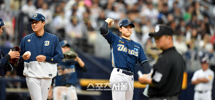 NC 김수경 투수코치가 4일 고척스카이돔에서 열린 2023 프로야구 키움히어로즈와 NC다이노스 경기 3회말 2사 만루에서 선발투수 이준호를 내리고 있다. 2023.07.04.