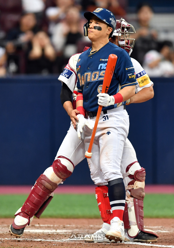 키움 포수 이지영이 4일 고척스카이돔에서 열린 2023 프로야구 키움히어로즈와 NC다이노스 경기 6회초 2사 3루에서 스트라이크아웃 낫아웃 상황에서 손아섭을 태그아웃시키고 있다. 2023.07.04.
