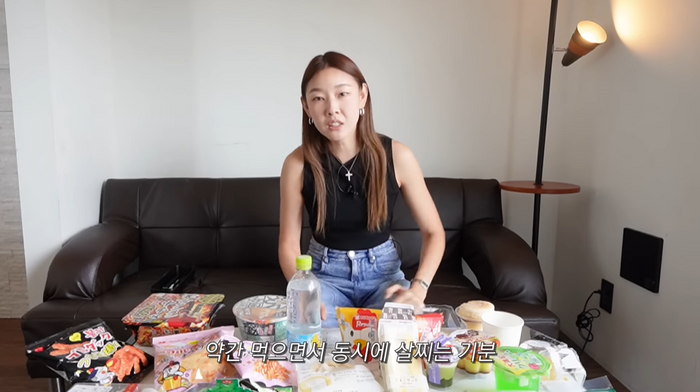 한혜진은 “조회 수가 잘 나온다는 제작진의 권유로 먹게 됐다”라며 “먹긴 먹을 텐데 다 먹진 않아도 되는가”라고 물었다. 평소 완벽한 자기관리로 유명한 한혜진은 편의점 음식 먹방에 고통스러워했다.