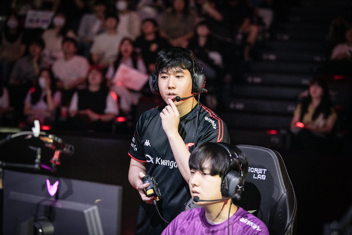 이날 2세트 내내 광동은 디플러스에게 끌려다녔고, 교전에서도 무너지면서 허무하게 매치를 내줬다. 어두운 낯빛으로 말문을 연 김 감독은 우사인 볼트와 함께 뛰는 선수를 광동 선수단에 비유하며 착찹해했다.