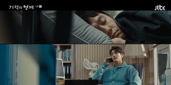5일 방송된 JTBC 수목극 ‘기적의 형제’에서 강산(배현성 분)은 육동주(정우 분)와 함께 자신이 교통사고가 난 장소로 향했고, 기시감을 느꼈다.
