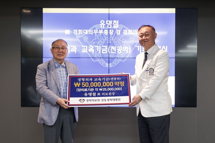 [스포츠서울 | 황철훈기자] 경희대학교의료원은 5일 후마니타스암병원 국제회의실에서 유명철 전 경희대학교 의무부총장의 정형외과 발전을 위한 기부 약정식을 개최했다고 6일 밝혔다.