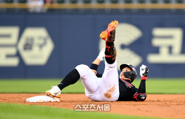 KT 황재균이 6일 잠실야구장에서 열린 2023 KBO리그 LG와 경기 4회초 1사1루 2루타를 친 후 2루에서 세이프되고 있다. 2023. 7. 6. 잠실 | 최승섭기자 thunder@sportsseoul.com