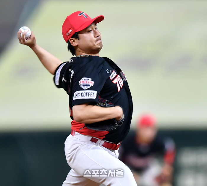 KIA 우완불펜 이준영이 6일 인천SSG랜더스필드에서 열리는 2023 프로야구 SSG랜더스와 KIA타이거즈의 경기 7회말 등판하고 있다. 2023.07.05.