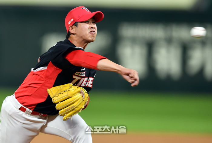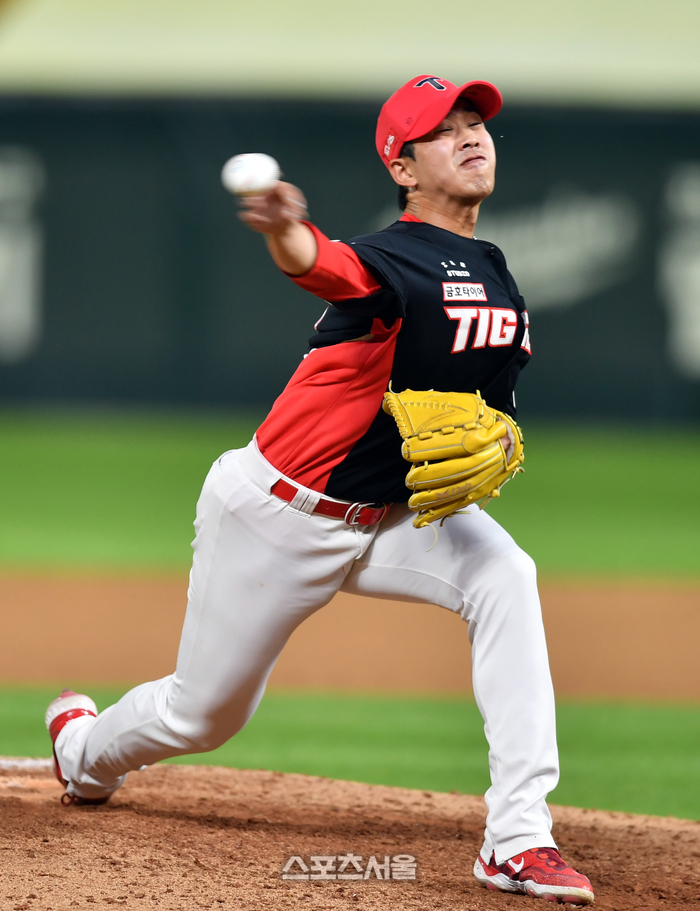 KIA 우완불펜 임기영이 6일 인천SSG랜더스필드에서 열리는 2023 프로야구 SSG랜더스와 KIA타이거즈의 경기 7회말 이준영에 이어 등판하고 있다. 2023.07.05.