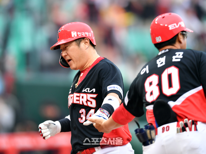 기선은 SSG가 제압하는 듯했다. 1회말 2사 후 연속 3안타로 선취점을 뽑았다. 그러나 전날 17점을 몰아친 KIA 타선은 한때 ‘킬러’로 불렸던 김광현을 매섭게 몰아쳤다. 2회초 선두타자로 나선 최형우가 몸쪽으로 밀려든 체인지업(시속 133㎞)을 걷어올려 우월 동점 솔로 홈런을 때려냈다. 시즌 10호 아치로, 2008년부터 16연속시즌 두 자릿수 홈런을 쏘아올렸다. 16연속시즌 두 자릿수 홈런은 SSG 최정(2006~2023년)에 이은 역대 두 번째 진기록이다.