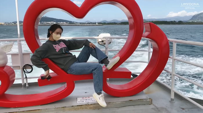 배에는 하트 모양의 포토존이 있었다. 임윤아는 함께 탄 승객들 앞에서 과감한 포즈를 취하다가 쑥스러워 하는 모습으로 웃음을 자아냈다.