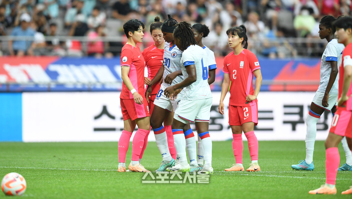 결국 전반 16분 선제 실점했다. 아이티의 후방 패스를 오른쪽 측면 수비수 추효주가 걷어내지 못했다. 그 사이 몽데지르가 단숨에 페널티박스로 진입했고, 오른발 감아차기 슛으로 그대로 대표팀의 골망을 흔들었다. 5분 뒤에도 아이티는 페널티박스 안에서 위협적인 슛을 한 차례 날렸다. 대표팀은 후방에서 시작되는 공격 전개가 전혀 이뤄지지 않았다.