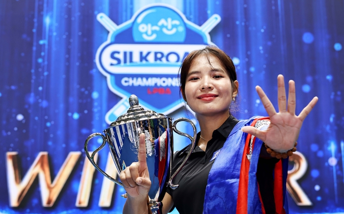 3쿠션의 국제적인 스타이자 ‘캄보디아 김연아’로 불리는 스롱 피아비(33·블루원리조트)가 여자 프로당구 LPBA 새 역사를 썼다. 통산 6번째 개인 투어 우승을 차지하며 최다승 신기록을 세웠다. 피아비는 9일 안산 상록수체육관에서 열린 2023~2024시즌 LPBA 2차 투어 ‘실크로드&안산 챔피언십’ 결승에서 ‘젊은 피’ 용현지(22·하이원리조트)를 파이널 세트 접전 끝에 세트스코어 4-3(6-11 11-3 11-4 5-11 11-7 7-11 9-2)으로 꺾고 우승했다.
