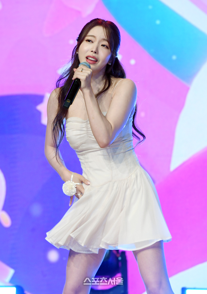 가수 박성연이 10일 서울 강남구 일지아트홀에서 진행된 네 번째 디지털 싱글 '사랑의 세탁기' 발매 기념 쇼케이스에서 '사랑의 세탁기'를 열창하고 있다. 2023. 7. 10. 박진업기자 upandup@sportsseoul.com