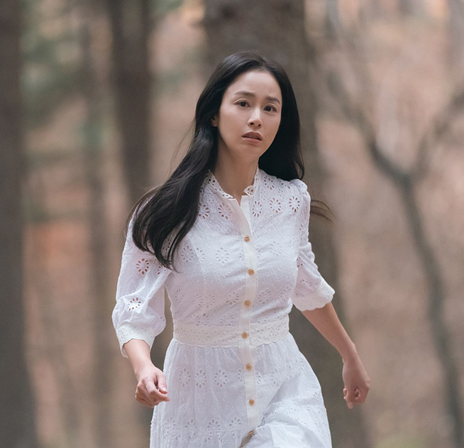 ‘마당집’에서 김태희는 언니의 사망을 목격한 뒤 신경쇠약에 걸린 주란으로 출연해, 폐쇄적이고 극히 내성적인 캐릭터를 섬세하게 그려냈다. 어느날 마당에서 시체 썪는 냄새를 맡으며 시작된 그의 불안은 남편과 아들이 연루된 살인사건의 실체에 다가서며 점점 더 큰 파국으로 변질된다.