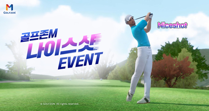 마지막인 나이스샷 달성 이벤트는 골프존M 플레이 중 나이스샷의 횟수를 기준으로 미션을 달성하면 골드, 보석, 샤프트 교환권, 프리미엄 GS카드 뽑기권 등을 골고루 지급한다.