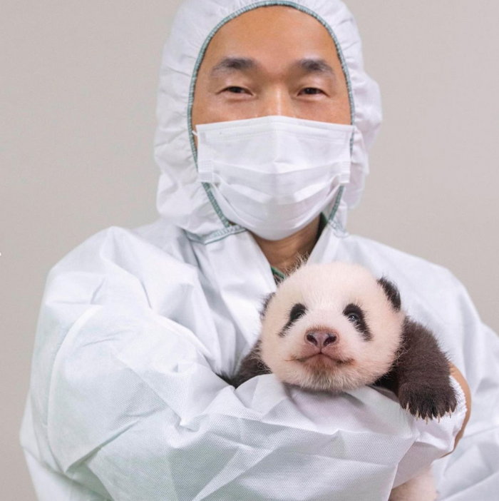 에버랜드 측은 아이바오가 낳은 쌍둥이 판다의 모습을 공개하며 “첫째 180g, 둘째 140g, 아직 꼬물이지만 무럭무럭 자라서 푸바오 언니처럼 예뻐질거예요. 히히”라는 글로 소식을 전했다.