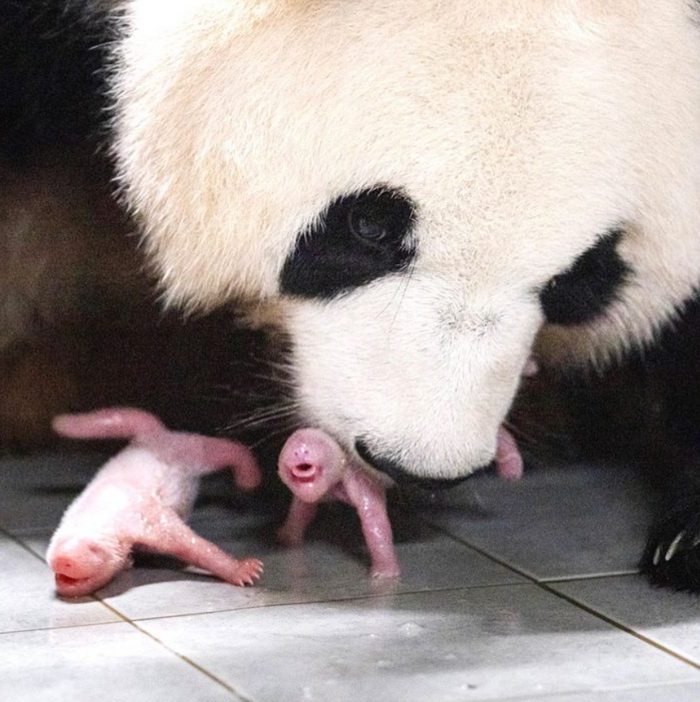 사진 속에는 온몸이 핑크색에 하얀 털이 덮인채 눈도 채뜨지 못한 자그마한 아기 판다들의 모습이 담겻다. 판다는 포유류 중에서도 가장 작은 새끼를 낳는 동물 중 하나다.