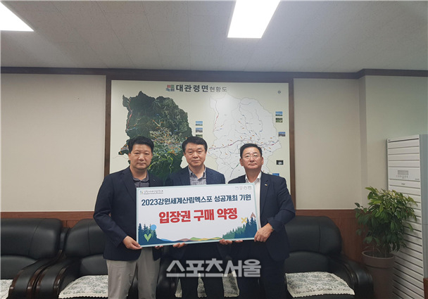 [스포츠서울ㅣ춘천=김기원 기자] (재)강원세계산림엑스포조직위원회(조직위원장 김진태)는 12일 ‘2023 강원세계산림엑스포’ 성공 개최를 기원하며 대관령 하늘목장(목장장 박영식)에서 입장권(5백만원)을 구매했다고 밝혔다.