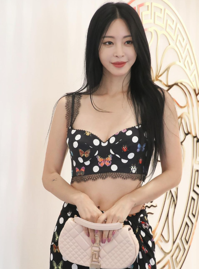 공개한 사진에서 한예슬은 수영복을 연상시키는 과감한 투피스를 입고 포즈를 취했다. 나비가 그려진 발랄한 의상에 작은 백을 들고 특유의 신비로운 분위기를 연출했다.