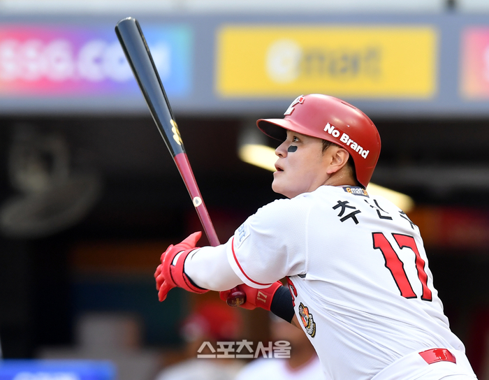 SSG 1번타자 추신수가 12일 인천SSG랜더스필드에서 열린 2023 프로야구 SSG랜더스와 두산베어스의 경기 1회말 선두타자로 나와 가운데 담장을 훌쩍 넘기는 홈런을 터트린 후 홈인하고 있다. 2023.07.12.