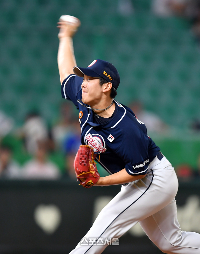 두산 우완불펜 김명신이 12일 인천SSG랜더스필드에서 열린 2023 프로야구 SSG랜더스와 두산베어스의 경기 7회말 브랜든에 이어 등판하고 있다. 2023.07.12.