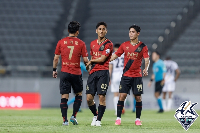 18경기를 치른 경남과 김천은 승점 36으로 같다. 다만 다득점에서 경남(36골)이 김천(31골)에 앞서 1위 자리에 올라 있다. 3위는 부산 아이파크(승점 34)인데 1경기를 더 소화했다. 4위 FC안양(승점 31)부터 6위 김포FC(승점 29)까지는 1점 차이로 순위가 바뀌고 있다.