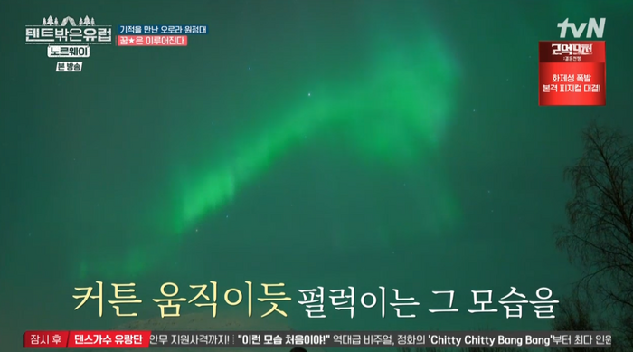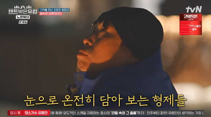 13일 방송된 tvN ‘텐트밖은 유럽-노르웨이’ 에서 유해진, 박지환, 윤균상은 마지막 오로라 헌팅에 나섰다.
