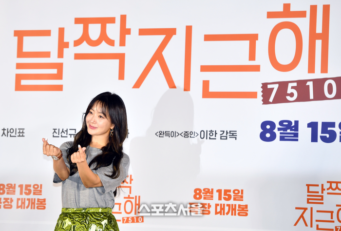 김희선이 14일 건대입구 롯데시네마에서 열린 영화 ‘달짝지근해:7510’ 제작보고회 무대에 올라 포토타임을 갖고 있다. 유해진, 김희선, 차인표, 진선규, 한선화가 출연하는 ‘달짝지근해:7510’는 8월 15일 개봉예정이다. 2023.07.14.
