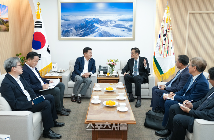 [스포츠서울ㅣ제주=김기원 기자] 오영훈 제주특별자치도지사는 14일 오후 4시 도청 집무실에서 이창용 한국은행 총재를 만나 지역경제 현안을 공유하고, 양 기관 간 지속적인 협력체계 구축방안을 논의했다.