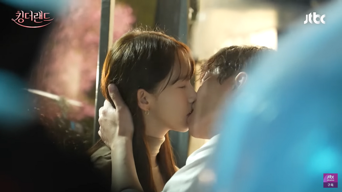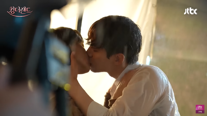 14일 유튜브 채널 ‘JTBC Drama’에는 ‘“허락해 줘” 사랑♥구원 첫 키스 두근두근 키스신 비하인드 (※잇몸마름 주의) | 킹더랜드 메이킹KING THE LAND’라는 메이킹 영상이 게재됐다.