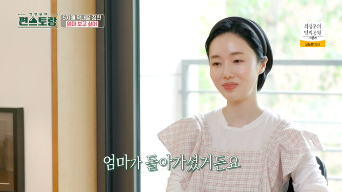 이정현은 과거 촬영분에서 어머니와 통화를 하던 장면을 보며 눈시울을 붉혔다. 그는 “여름마다 물김치를 담그면 엄마 생각이 되게 많이 난다”라고 전했다.