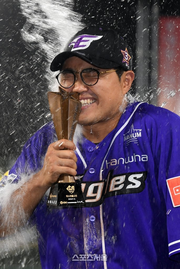 [스포츠서울 | 사직=김민규기자]그야말로 전장의 지배자였다. 한화의 간판타자 채은성(33)이 별들의 무대를 지배하며 자신의 진가를 증명했다. 홈런레이스 우승에 이어 올스타전 MVP(최우수선수) ‘미스터 올스타’에 뽑히며 ‘별들의 왕’에 올랐다. 여기에 채은성은 이 모두를 석권한 KBO 올스타전 최초의 선수가 됐다.