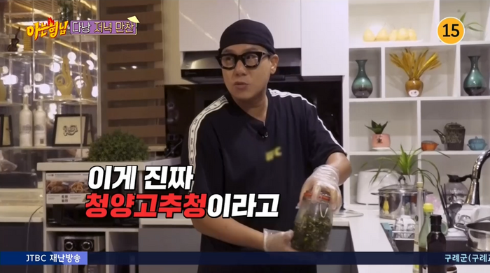 이상민은 한국에서 직접 가져온 트러플 오일, 들기름, 딸기고추장, 간장, 딸기조청 등 양념 재료를 소개했다. 이상민은 “이건 청양고추로 청을 만든 거다”라며 청양고추청을 꺼내 눈길을 끌었다.