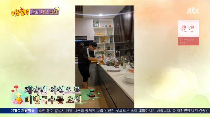 이날 이상민은 멤버들의 식사가 끝난 후에도 제작진을 위해 야식으로 비빔국수를 만들었다. 제작진은 “우와”라며 감동을 표했다.