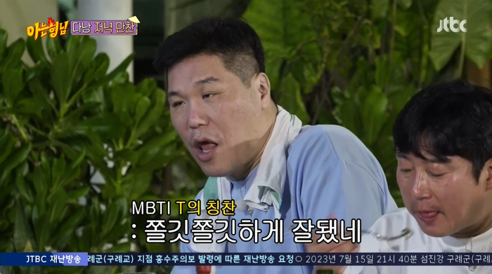 멤버들은 이상민의 요리에 감탄했다. MBTI가 T라는 서장훈도 “쫄깃쫄깃하게 잘 됐다”라고 칭찬했다.