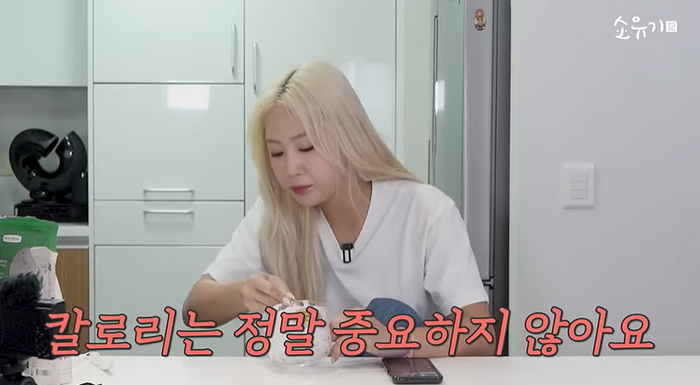 소유가 공개한 ‘첫 끼니’는 저녁 식사로 그릭요거트와 블루베리 8알, 그래놀라 한 줌을 섞은 것으로 간소한 식단이었다.